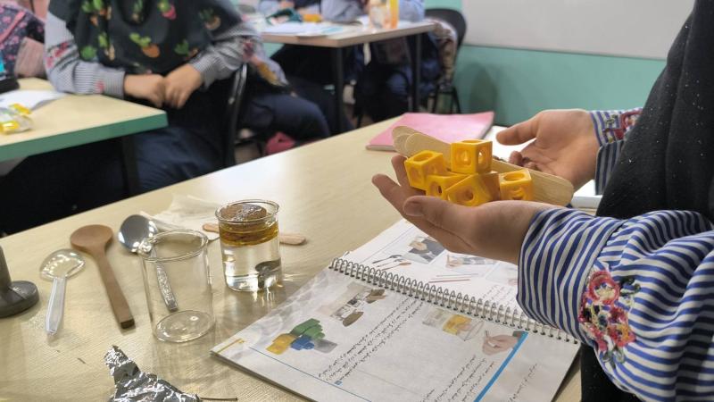آزمایش چگالیدر این بخش، چگالی اجسام مختلف با هم مقایسه شد.دختران با قرار دادن موادی مانند روغن، میخ آهنی و چوبپنبه در آب مشاهده کردند که هر جسم، بسته به چگالی خود، یا در آب فرو میرود یا روی آن میماند.آنها به این نتیجه رسیدند که هرچه چگالی جسمی بیشتر از آب باشد، فرو میرود و اگر کمتر باشد، روی آب شناور میماند؛