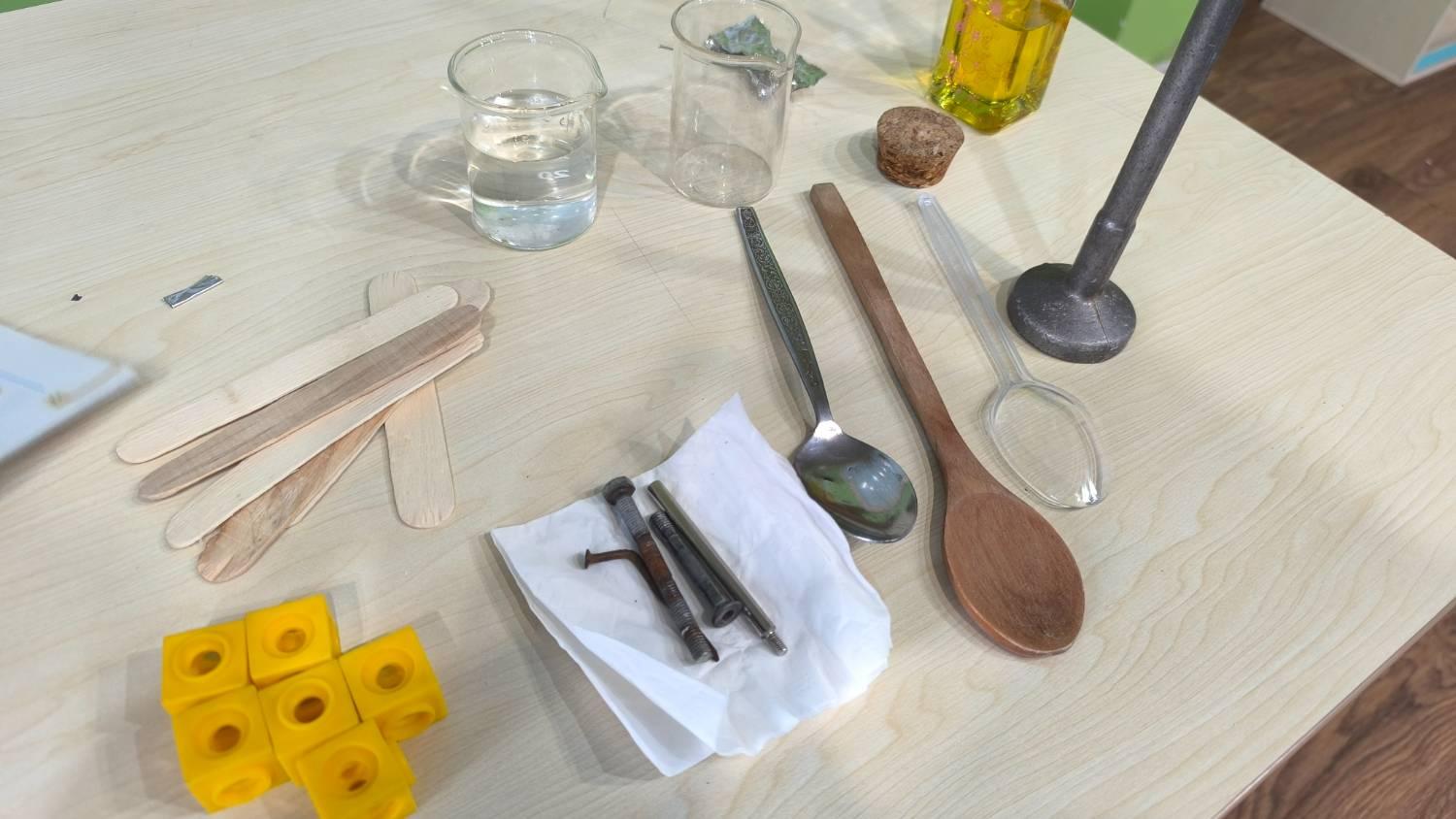آزمایش مقاومتدر این آزمایش، مقاومت و سختی مواد مختلف بررسی شد.دختران با مقایسهی قاشقهای فلزی، چوبی و پلاستیکی دریافتند که هرچه فشردگی ذرات یک ماده بیشتر باشد، آن ماده سختتر بوده و در برابر ضربه مقاومت بیشتری از خود نشان میدهد.