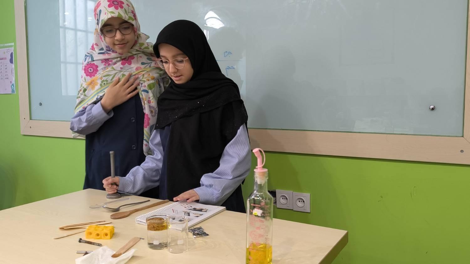 دختران کلاس ششمی ما در روزهای مختلف به سراغ آزمایشهای کتاب علوم رفتند و هر بار بخشی از مفاهیم درس را با انجام آزمایشات ساده اما جذاب تجربه کردند و با انواع واکنشهای شیمیایی آشنا شدند