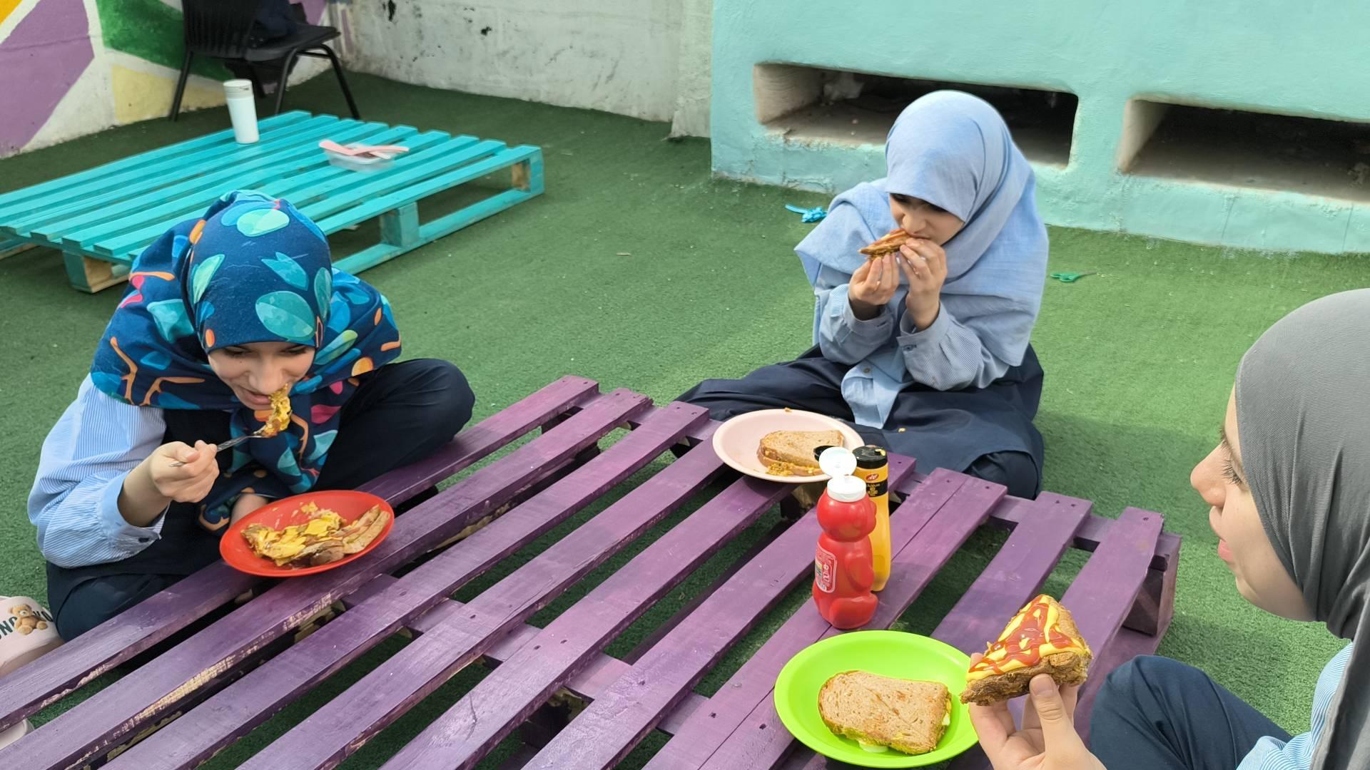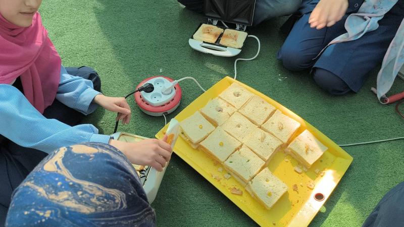 هر کس برای این زنگ وسیلهای را آورده بود و در کنار هم، این وسایل و مواد را تقسیم کردند و شروع به آماده کردن یک ساندویچ خوشمزه کردند.در پایان این زنگ متفاوت، همه دور هم نشستند، ساندویچهایشان را خوردند و یک تجربهی ساده اما دوستداشتنی از کار گروهی و با هم بودن را پشت سر گذاشتند
